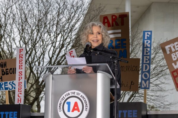 The pair joined in a gathering of artists and others who denounced censorship and faulted President Trump’s growing influence over…