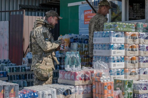 Cans packed with caffeine and branded with patriotic machismo have become an essential antidote to the stresses of war.
