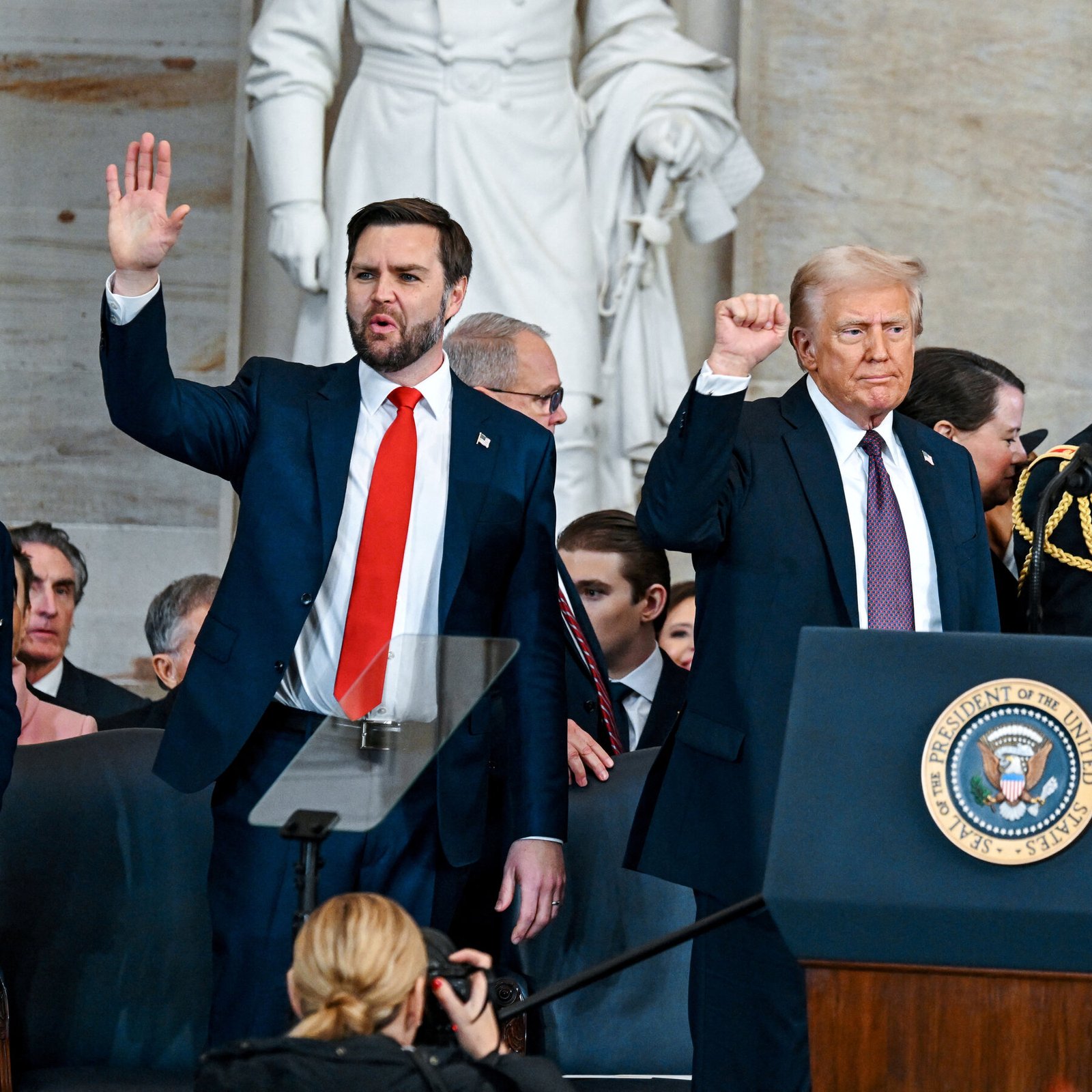 Donald John Trump took the oath of office again during a ceremony in the Capitol, promising a new “golden age of America” four years after he was evicted by voters.