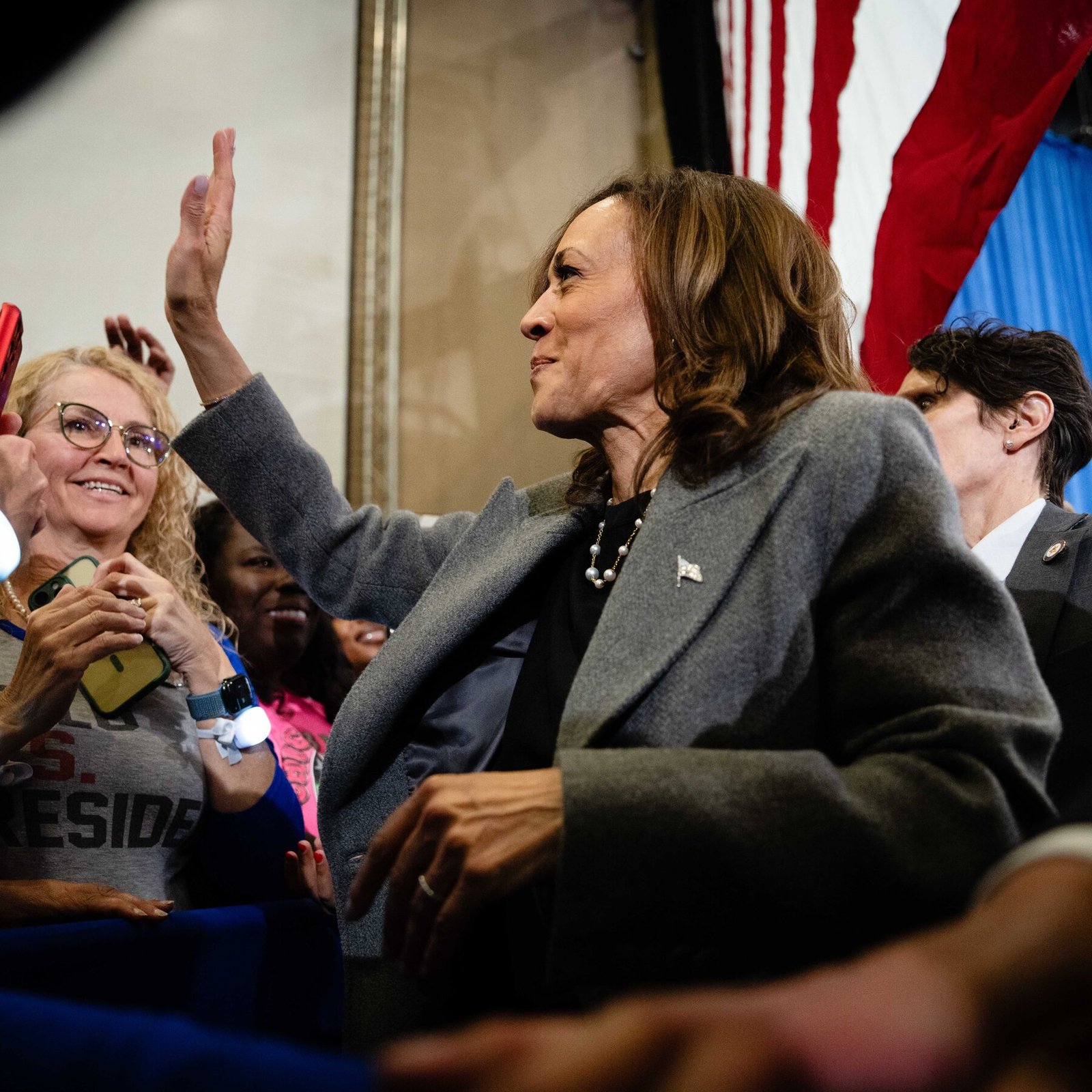 In an interview with the Rev. Al Sharpton on MSNBC, the vice president reacted to her opponent’s behavior at rallies, saying Americans “deserve so much better.”