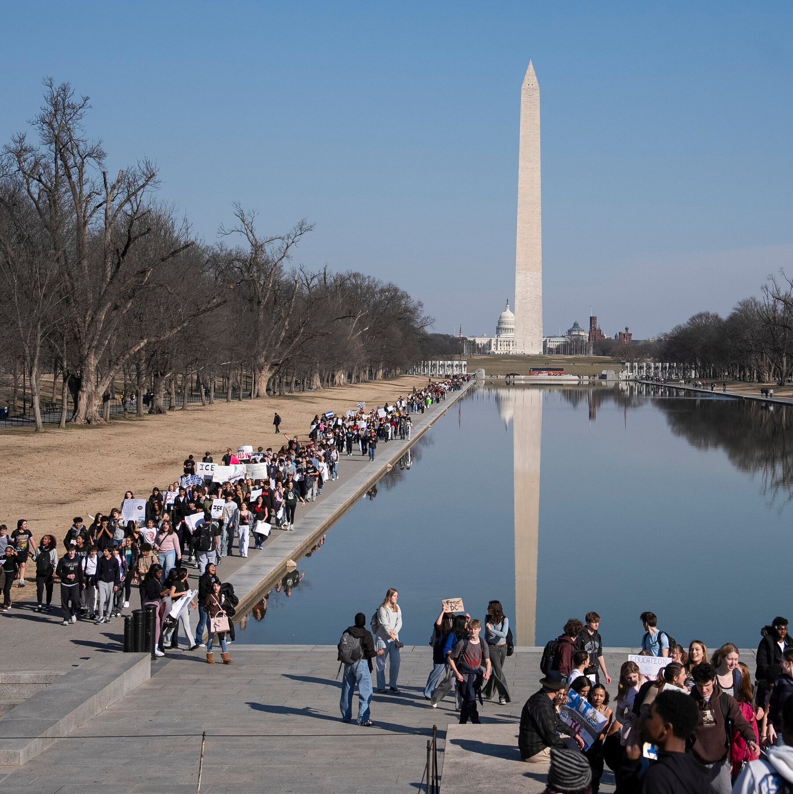 The demonstration at the Lincoln Memorial was the latest in a string of school walkouts across the country, which have resulted in arrests and condemnation from some officials, and plaudits from others.