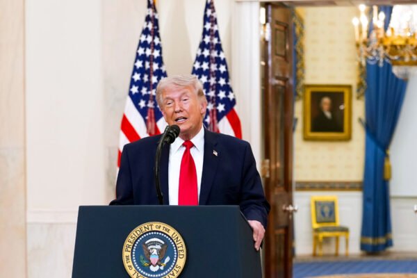 President Trump did not define a clear path out of the conflict, which he estimated would end within three weeks.