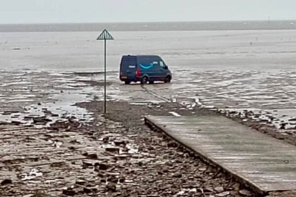 The Broomway in Essex is notoriously treacherous because of the quick-moving waters surrounding it. One delivery vehicle didn’t make it.