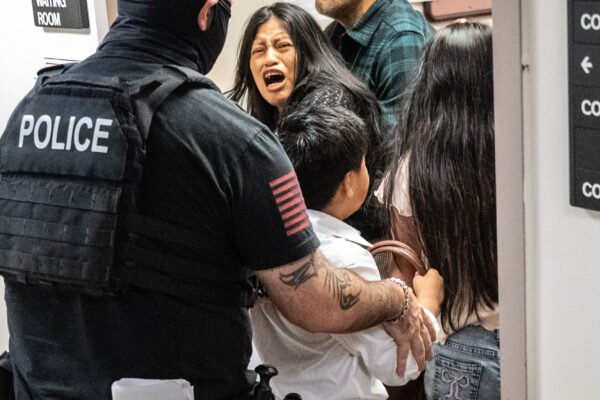 In a scene caught on video, the woman and a young girl were clinging to a man who was being…