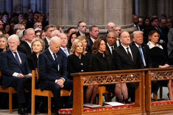 Pictures shared on social media by the vice president and by the Carter Center prominently showed other past presidents in…