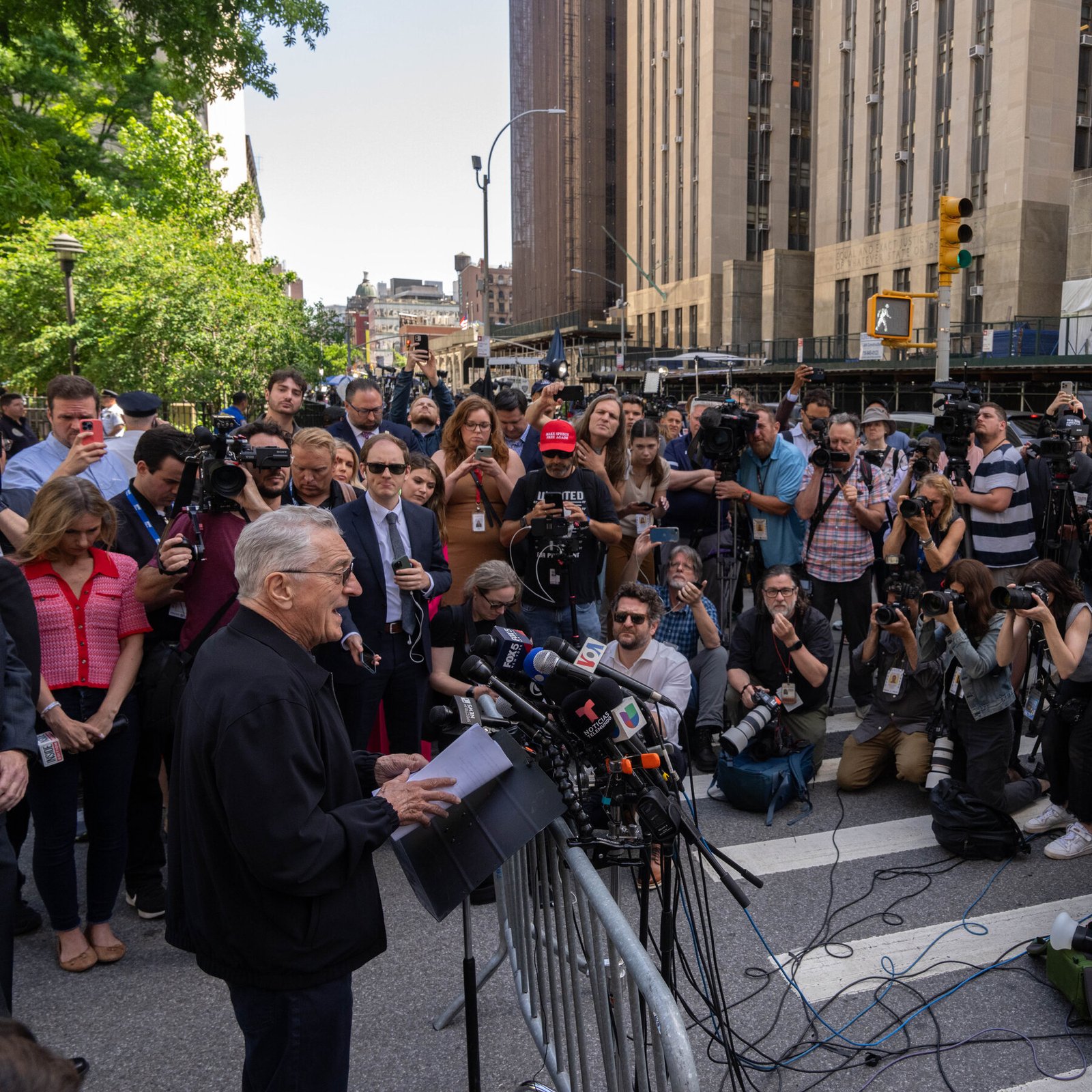 Seeking to troll Donald Trump outside his Manhattan trial, the Biden campaign held a news conference with the actor and two former Capitol Police officers. Mr. De Niro veered off script.
