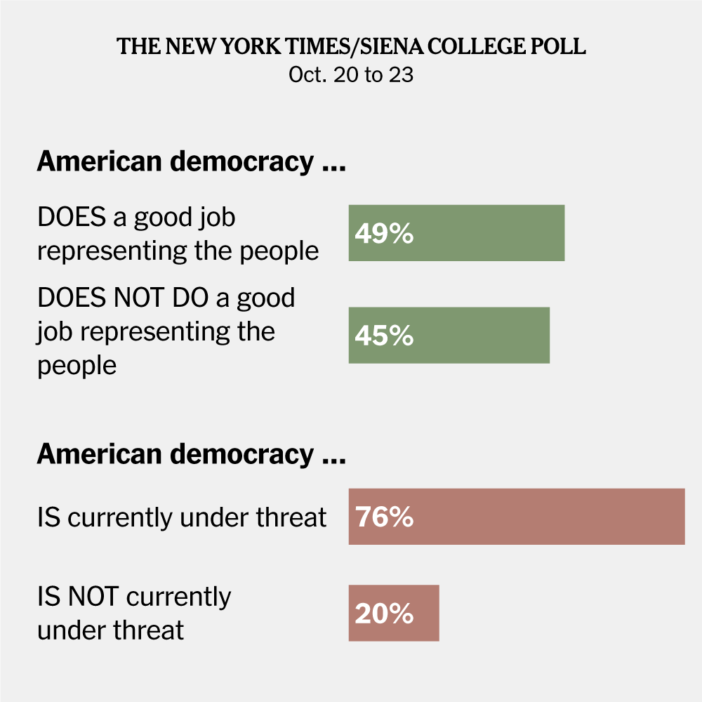 Nearly half say it does not do a good job representing the people, and three-quarters say it is under threat, according to a Times/Siena poll.